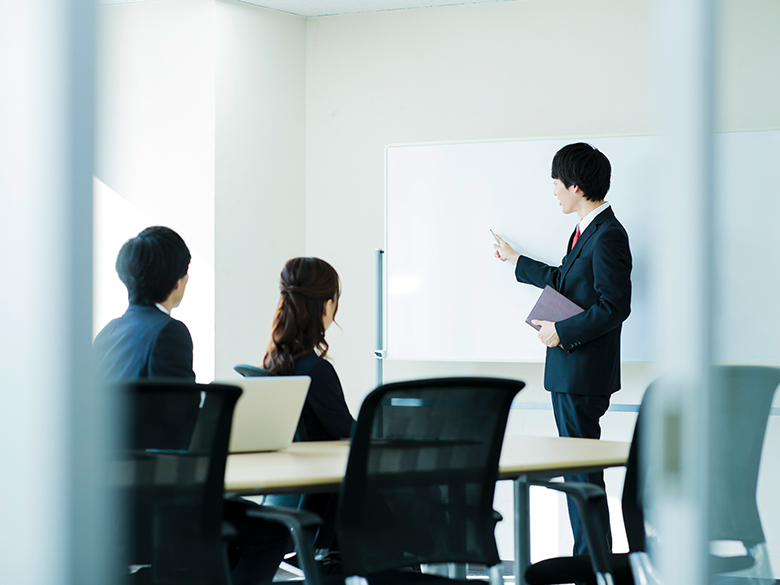 一方通行ではない、対話を重視した実践的な研修を企画・実施します。お客様企業の社員一人ひとりと向き合い、広い視野で物事を考えられるような指導を行います。